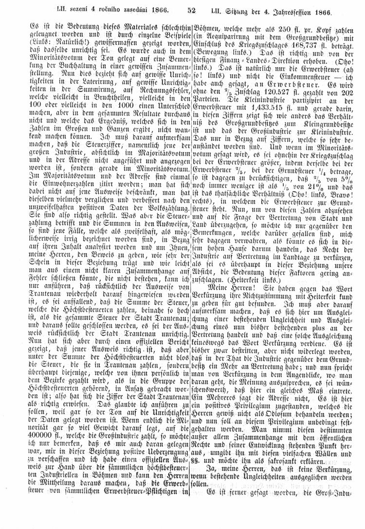 Nacházíte se: Digitální knihovna › Sněm království Českého 1861-1866 › Stenoprotokoly › 52. schůze › Pondělí 19. března 1866