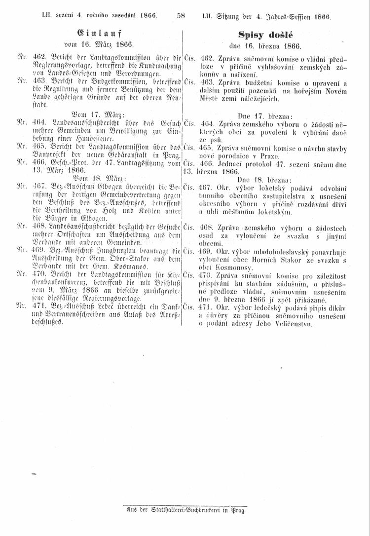 Nacházíte se: Digitální knihovna › Sněm království Českého 1861-1866 › Stenoprotokoly › 52. schůze › Pondělí 19. března 1866