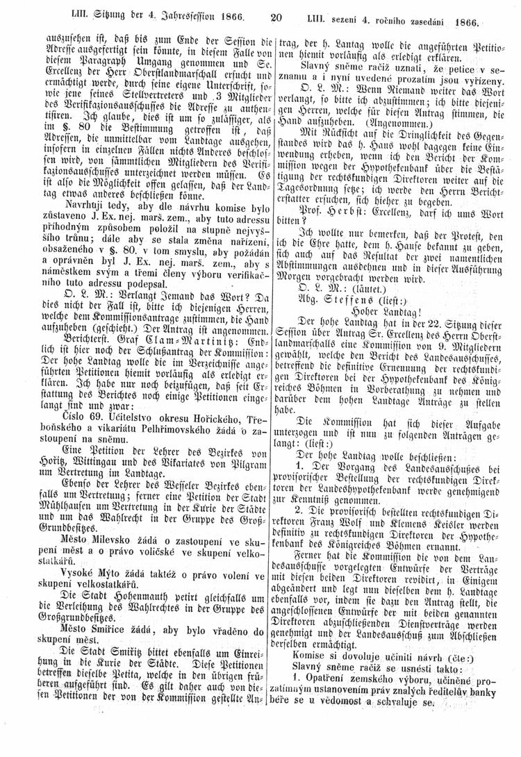 Nacházíte se: Digitální knihovna › Sněm království Českého 1861-1866 › Stenoprotokoly › 53. schůze › Úterý 20. března 1866