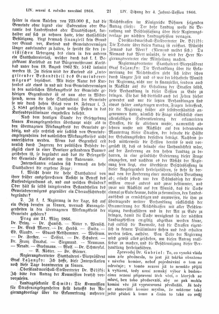 Nacházíte se: Digitální knihovna › Sněm království Českého 1861-1866 › Stenoprotokoly › 54. schůze › Středa 21. března 1866