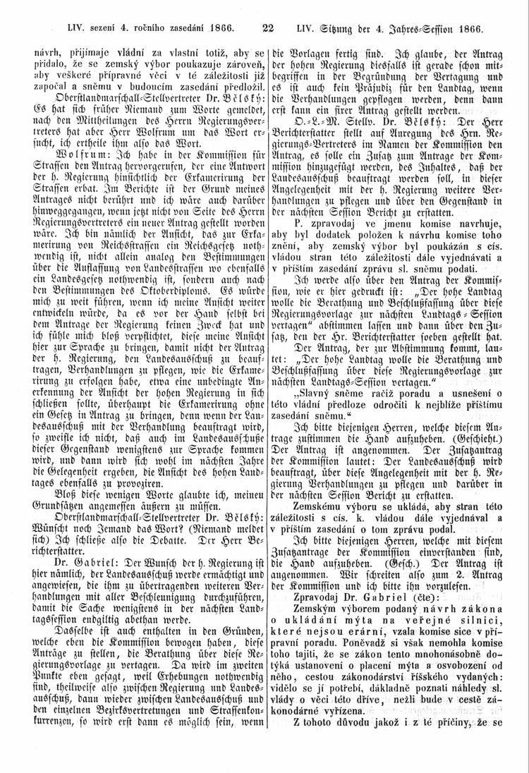 Nacházíte se: Digitální knihovna › Sněm království Českého 1861-1866 › Stenoprotokoly › 54. schůze › Středa 21. března 1866