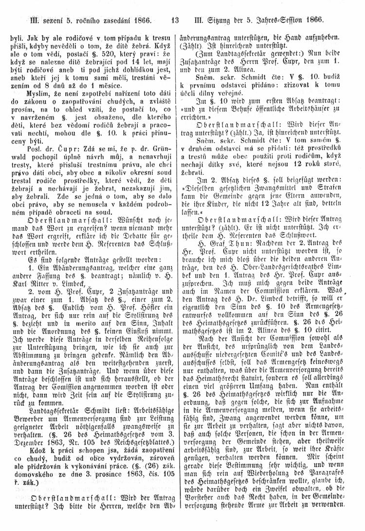 Nacházíte se: Digitální knihovna › Sněm království Českého 1861-1866 › Stenoprotokoly › 3. schůze › Pátek 23. listopadu 1866