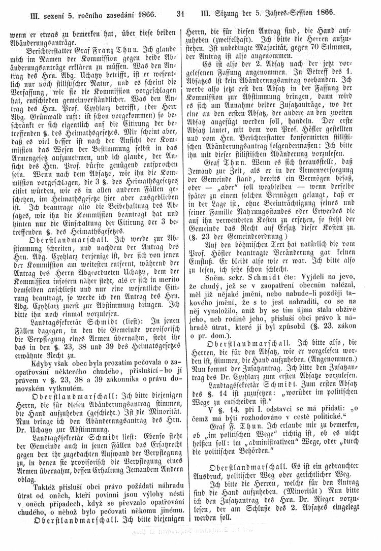 Nacházíte se: Digitální knihovna › Sněm království Českého 1861-1866 › Stenoprotokoly › 3. schůze › Pátek 23. listopadu 1866
