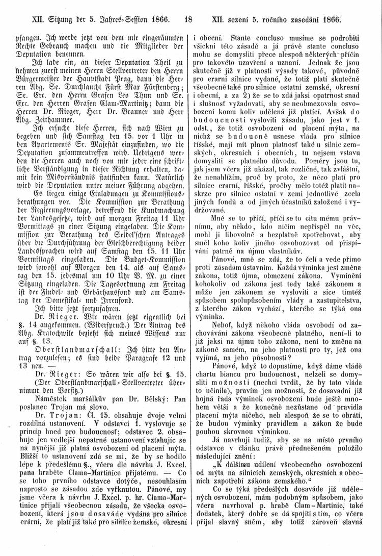 Nacházíte se: Digitální knihovna › Sněm království Českého 1861-1866 › Stenoprotokoly › 12. schůze › Čtvrtek 13. prosince 1866