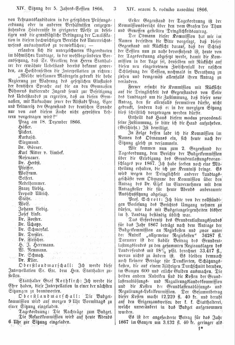 Nacházíte se: Digitální knihovna › Sněm království Českého 1861-1866 › Stenoprotokoly › 14. schůze › Úterý 18. prosince 1866