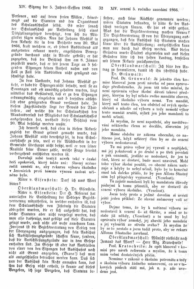 Nacházíte se: Digitální knihovna › Sněm království Českého 1861-1866 › Stenoprotokoly › 14. schůze › Úterý 18. prosince 1866