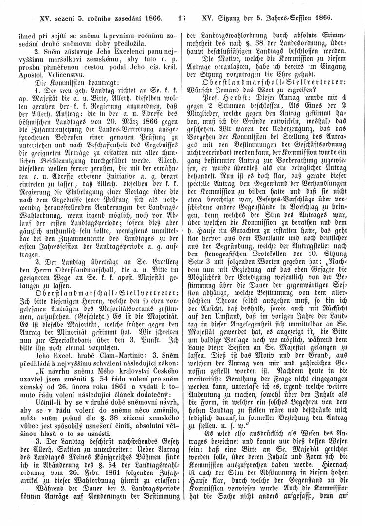 Nacházíte se: Digitální knihovna › Sněm království Českého 1861-1866 › Stenoprotokoly › 15. schůze › Středa 19. prosince 1866