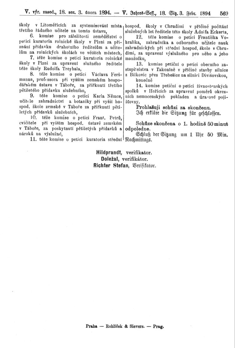 Nacházíte se: Digitální knihovna › Sněm království Českého 1889-1895 › 5. zasedání › Stenoprotokoly › 18. schůze › Sobota 3. února 1894