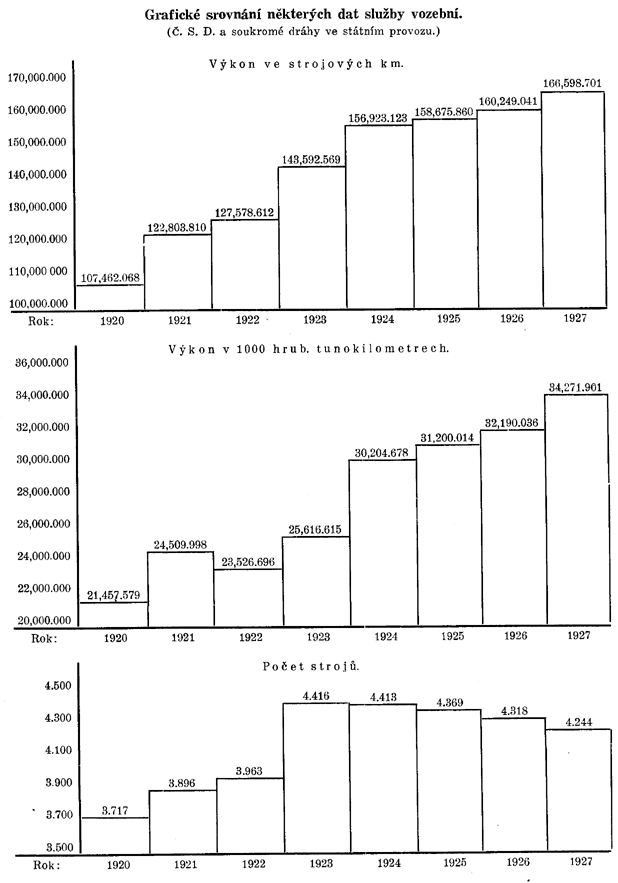 | ČSD. (od roku 1923 včetně ÚTD. a BD) | 109 | 209 | 630 | 688 | 920 | 919 | 912 | 2.366 | 2.360 |