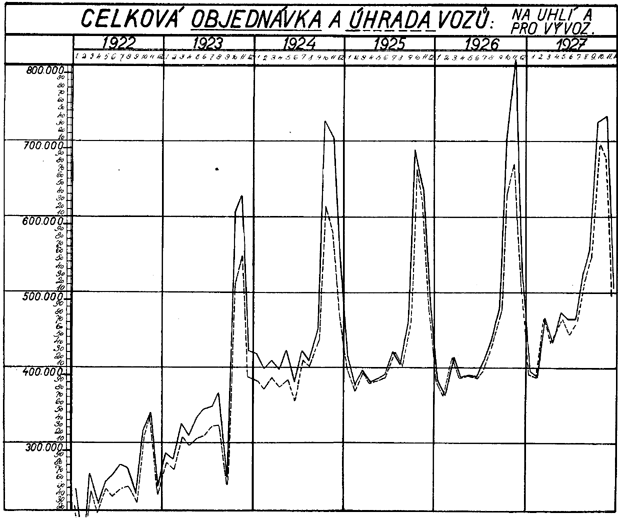 | 596.328 | 594.024 | 99% | 841.998 | 818.765 | 97% | Nedostatek krytých speciálních vozů a otevřených vozů přes 10 m dlouhých. Úhrada uhelné potřeby plná. | |