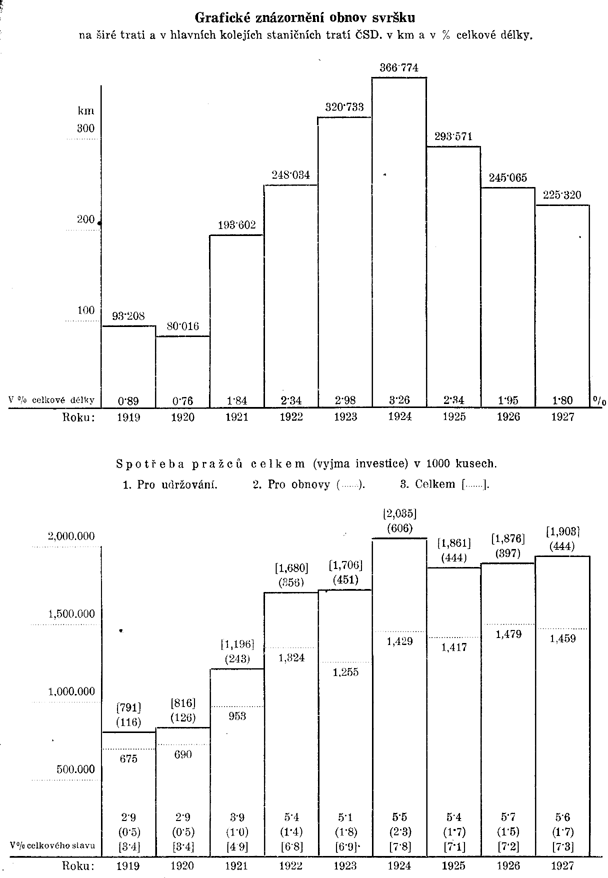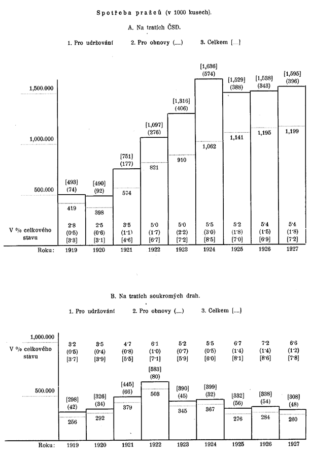 | ČSD. (od roku 1923 včetně ÚTD a BD.) | 413 | 719 | 1.078 | 1.100 | 1.856 | 2.168 | 2.525 | 8.363 | 8.401 |