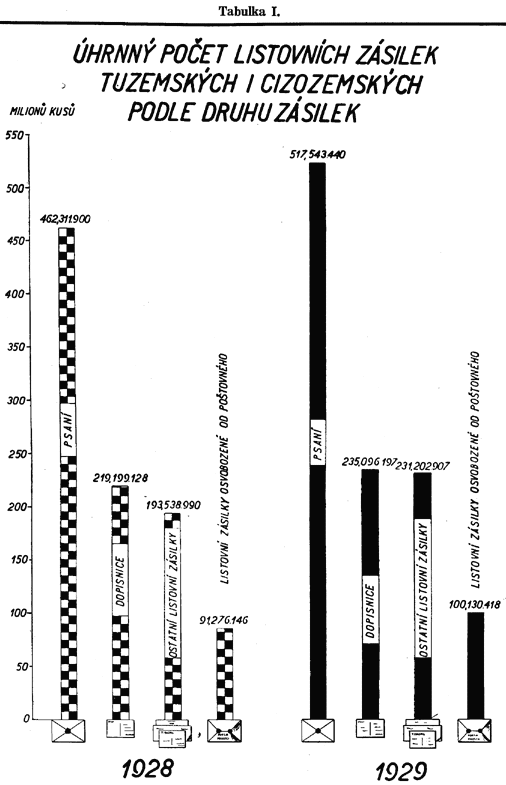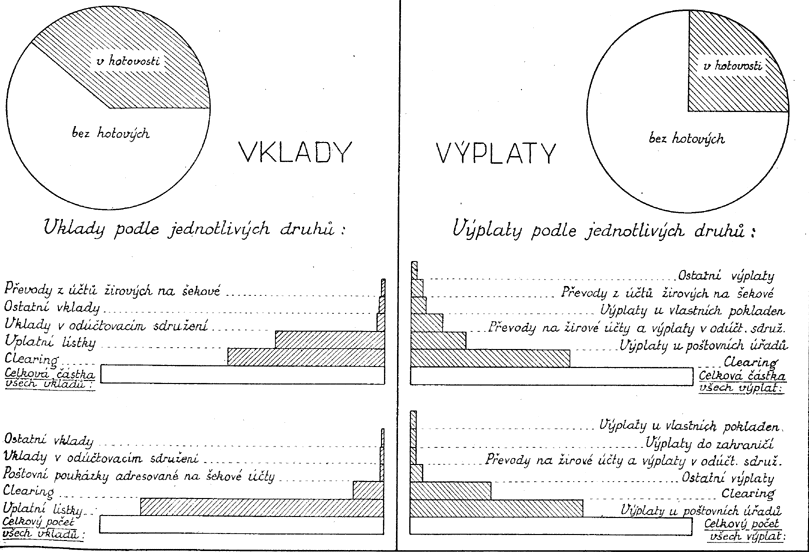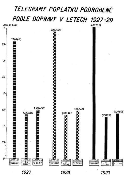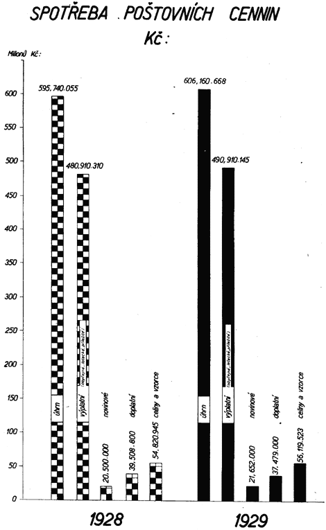 Mimo jmenované již diagramy zobrazují také diagramy na tabulkách č. XXXIII. až XXXVII. ostatní znaky, jež charakterisují vývoj finančního hospodářství Čsl. pošty, jakož i jeho předpoklady a výsledky.