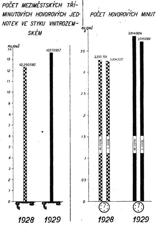 Z dosažených vyšších úhrnných těžeb poštovního, telegrafního a telefonního provozu jsou